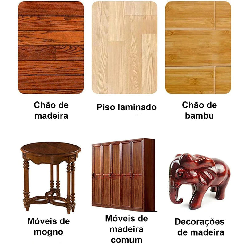 Cobre arranhões, limpa sujeira e dá aspecto de novo aos móveis!